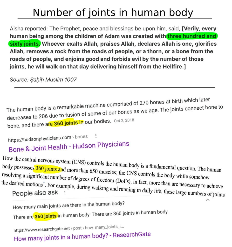 Thus, the miracle of 360 joints is still contested. Due to this, it cannot be used as strong evidence for the nubūwwah (prophethood) of Muhammad ﷺ. This should not worry Muslims as there are plenty of stronger and more conclusive proofs and evidences that establish the veracity of his nubūwwah.