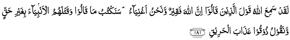 Any āyah (verse) of the Qurʾān or Ḥadīth that appears to suggest that Allāh has a need must be interpreted metaphorically since the Qurʾān explicitly mentions that Allāh is free of all need. For instance, the Qurʾān mentions that those who give Allāh a good loan will receive back far more from Allāh than what was given (Qurʾān 2:245). Some of the Jews in the lifetime of Prophet Muḥammad ﷺ heard this āyah and mockingly stated that Allāh is poor, while they are rich. Allāh responded to their statement.
